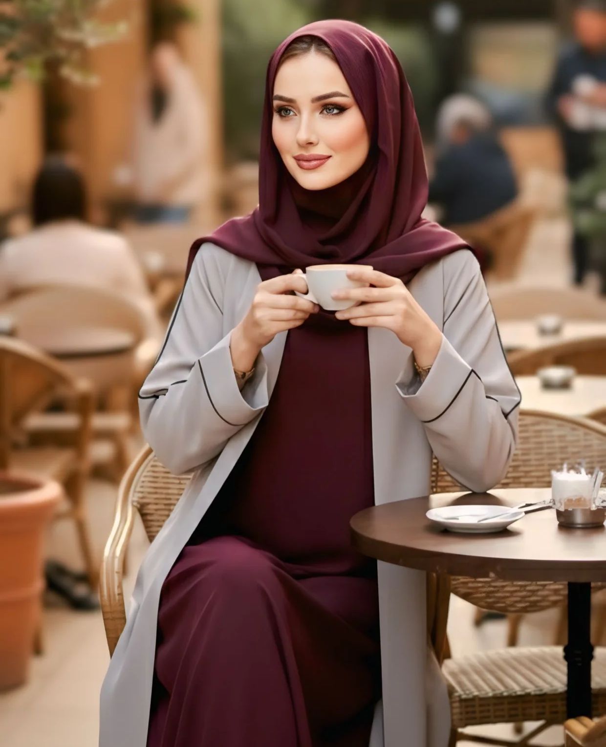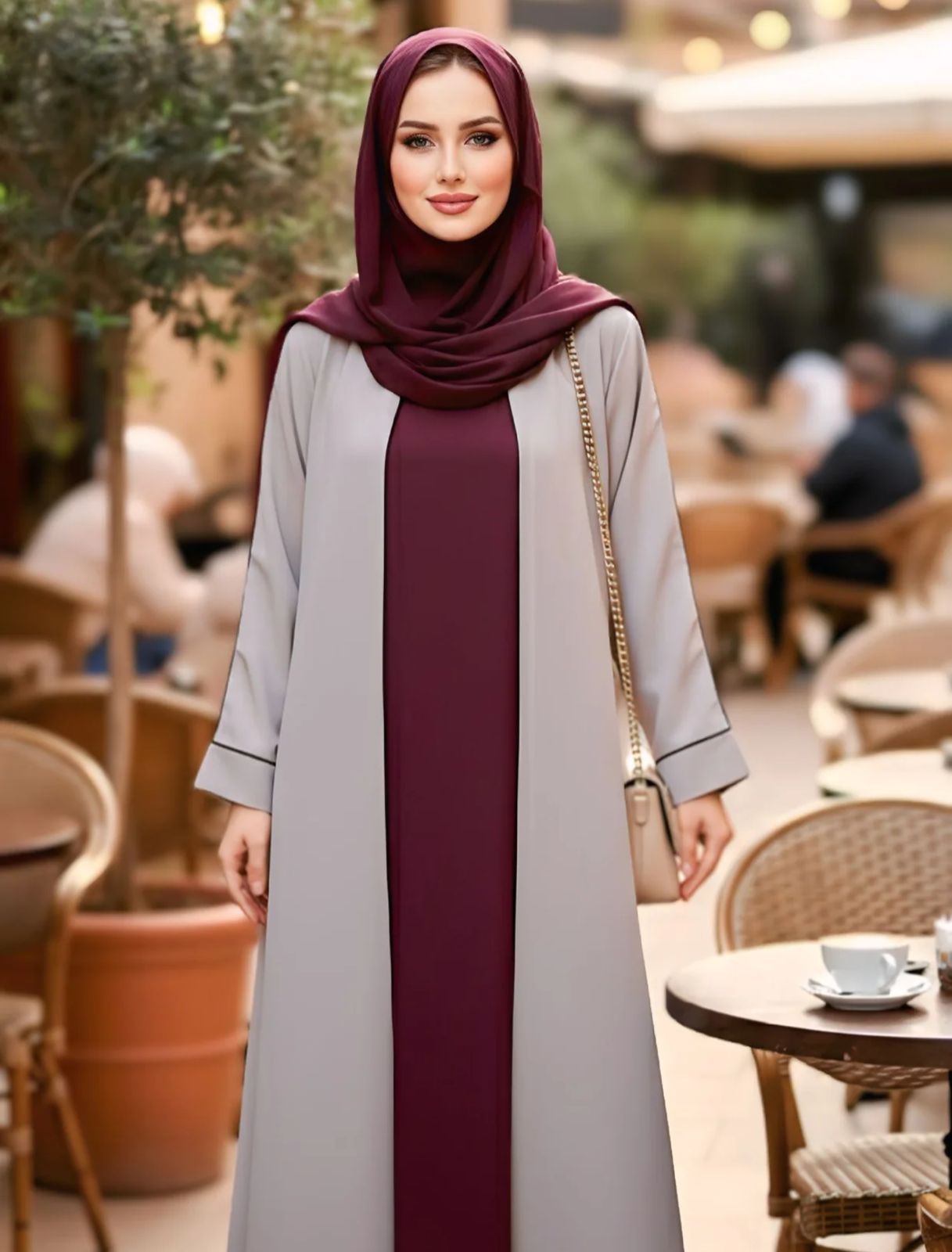 ✨ Elegant Dual-Tone Abaya — Slate Grey & Grape Plum